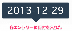 ブログの各エントリーに日付を表示していなかったのですが、いつ書いたエントリーかわからない状態だったので、それぞれのエントリーに日付を表示するようにしました。